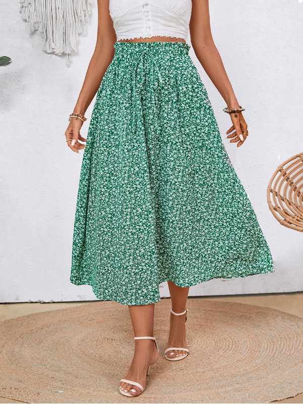 Luna™ | Grøn Midinederdel med Blomstermønster