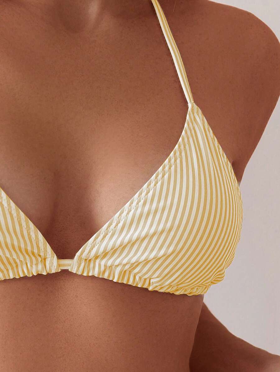 ✓ Stilrent og alsidigt design – De klassiske blå-hvide striber og den højtaljede, højt skårne underdel giver et elegant look, der passer både til afslapning og til festlige anledninger som fx. uafhængighedsdag